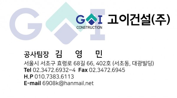 - 본 게시물은 고이건설 에서 제공한 자료로 개인정보를 포함하고 있으며 임의유포, 수집, 배포가 금지됩니다.